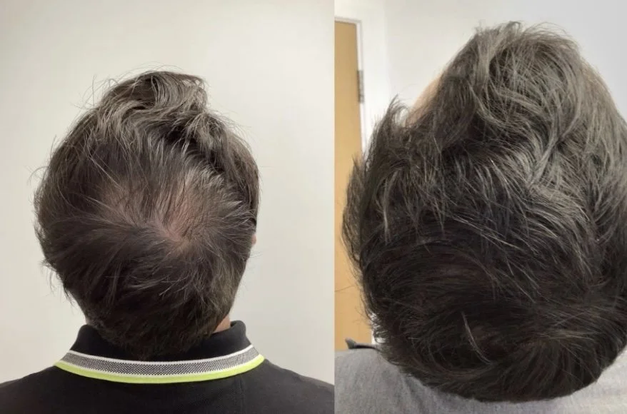 Visible improvement in hair thickness and density in the crown area following a personalised treatment course
